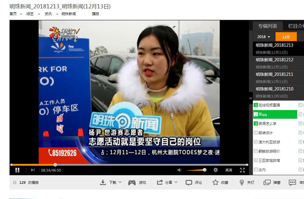 12月11-16日,第14届FINA世界游泳锦标赛(25米)在杭州举行,伟德官网世游赛志愿者在岗服务期间,他们勇于担当、乐于奉献,用智慧和汗水践行了“奉献、友爱、互助、进步”的志愿者精神。12月13日,明珠新闻对伟德官网志愿者进行报道。