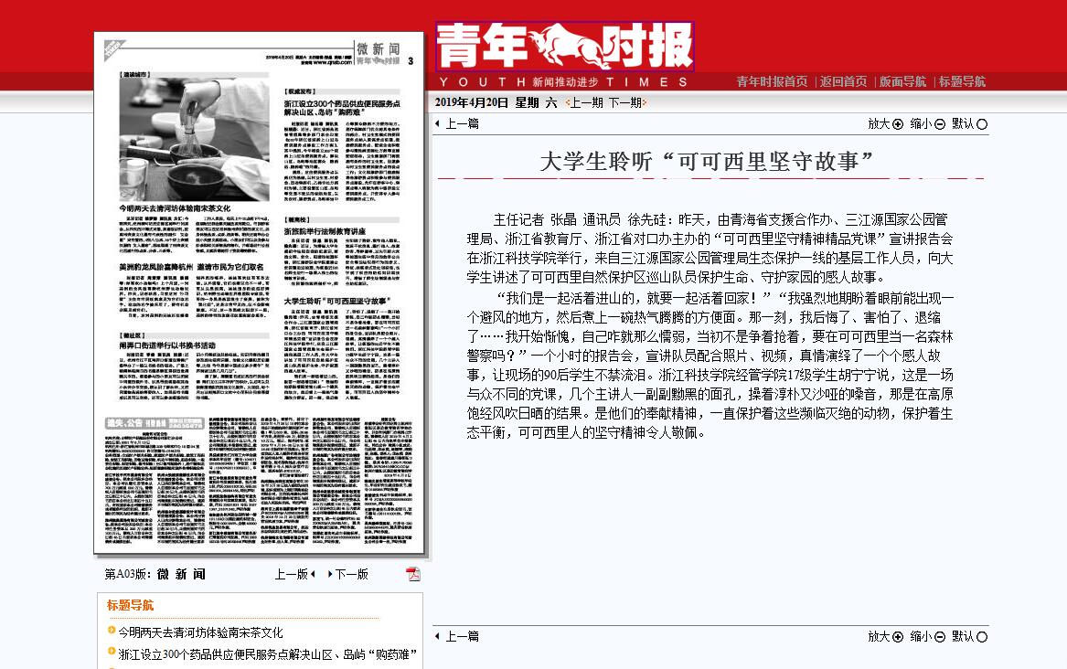 青年时报:大学生聆听“可可西里坚守故事