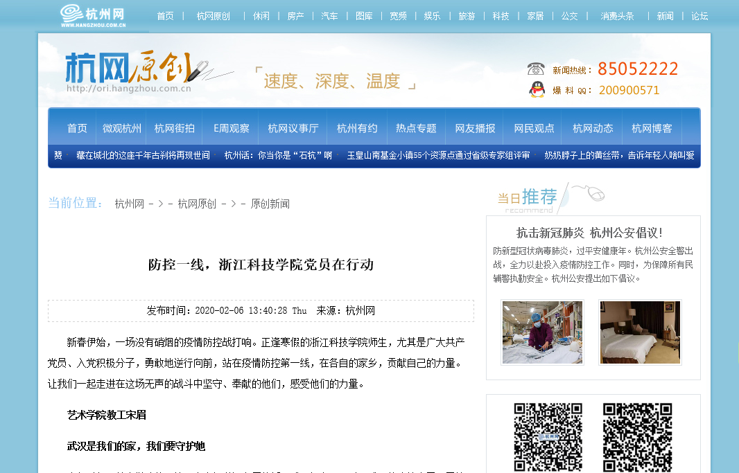 杭州网:防控一线,浙江科技学院党员在行动