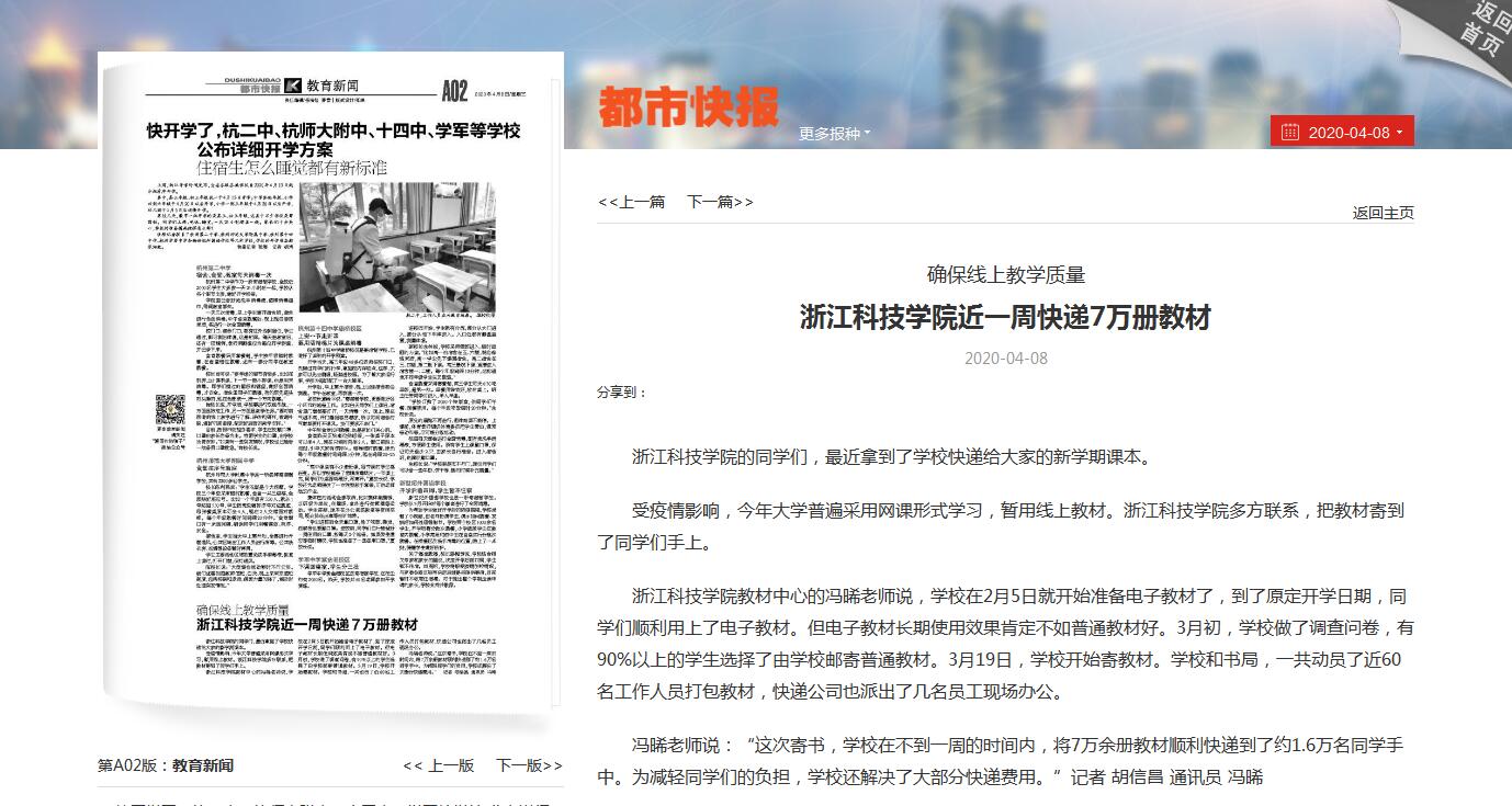 都市快报:确保线上教学质量 浙江科技学院近一周快递7万册教材