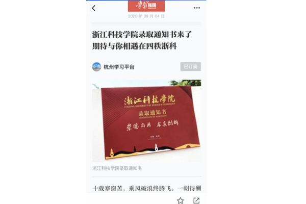 原文链接:浙江科技学院录取通知书来了 期待与你相遇在四秩浙科