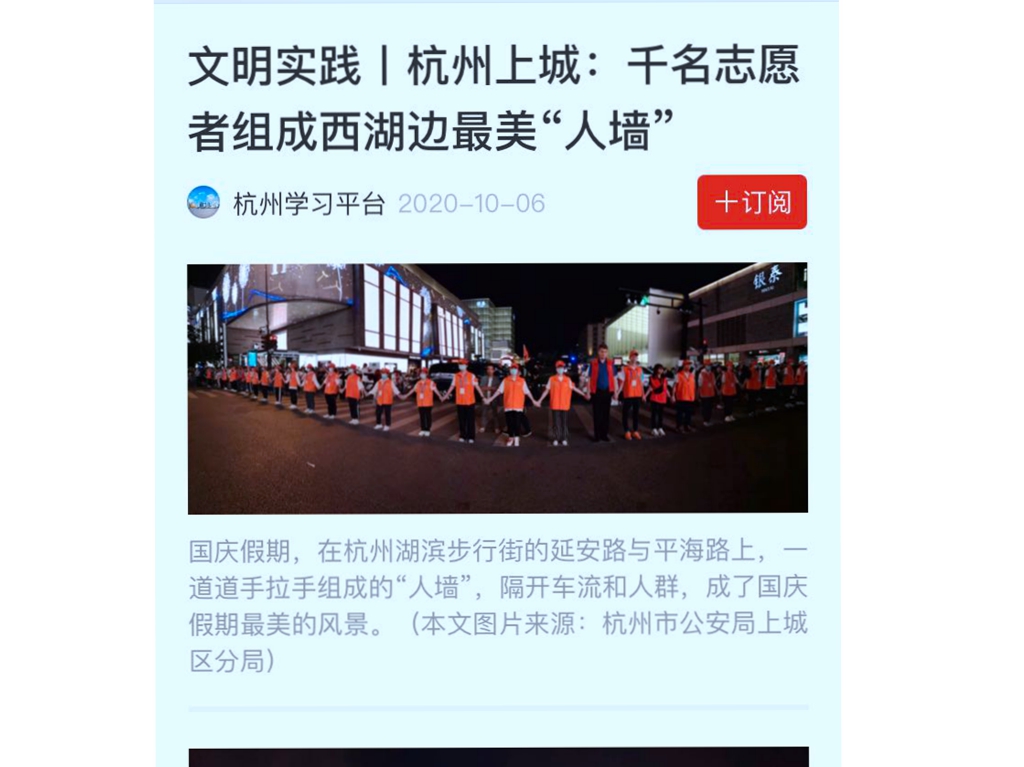 学习强国:文明实践丨杭州上城:千名志愿者组成西湖边最美“人墙”