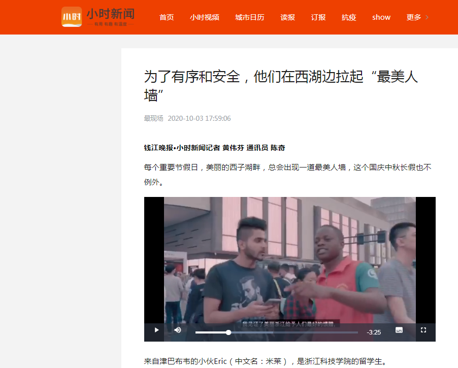中国蓝新闻 :杭州湖滨迎游客潮 中外志愿者助力服务