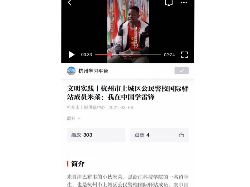 原文链接:杭州市上城区公民警校国际驿站成员米莱:我在中国学雷锋