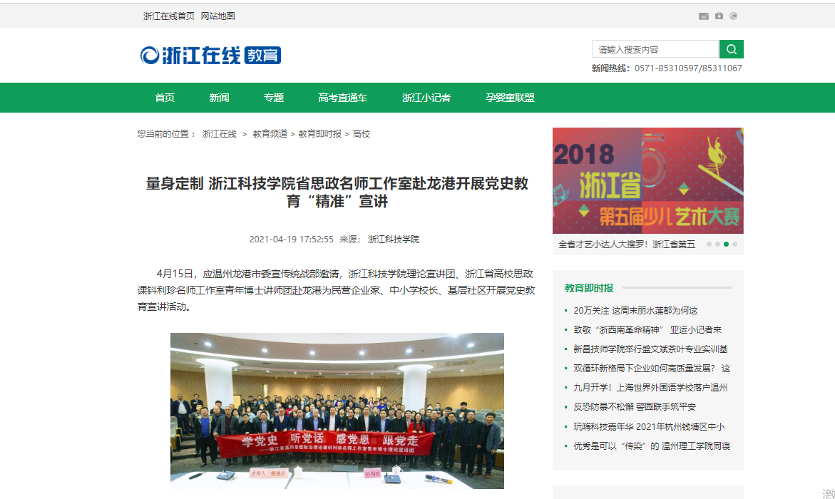 浙江在线:量身定制 浙江科技学院省思政名师工作室赴龙港开展党史教育“精准”宣讲