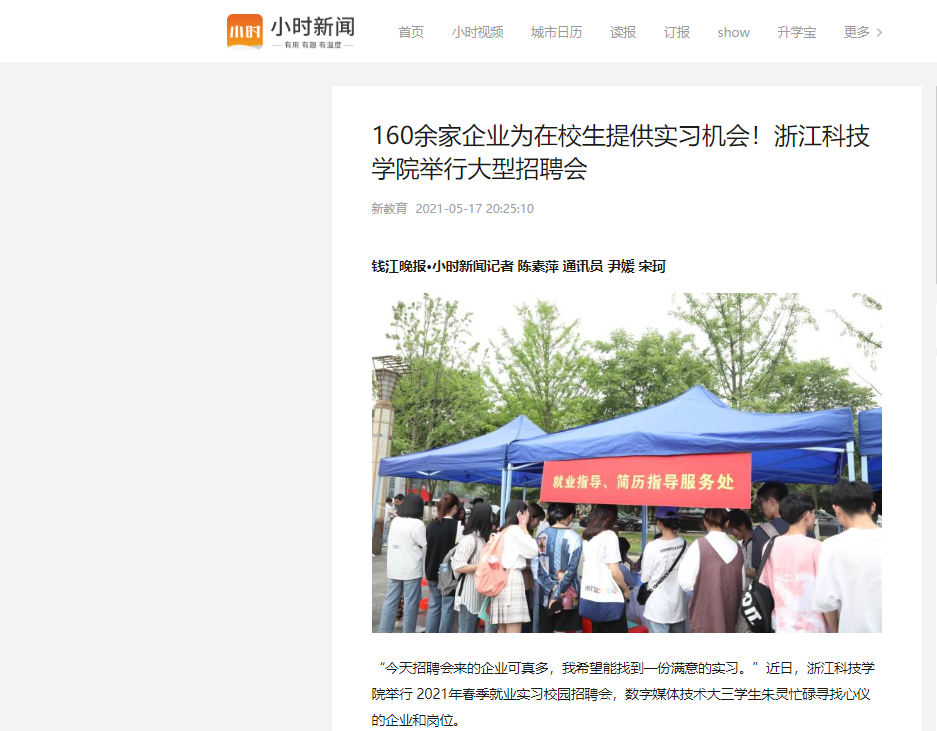 小时新闻:160余家企业为在校生提供实习机会!浙江科技学院举行大型招聘会