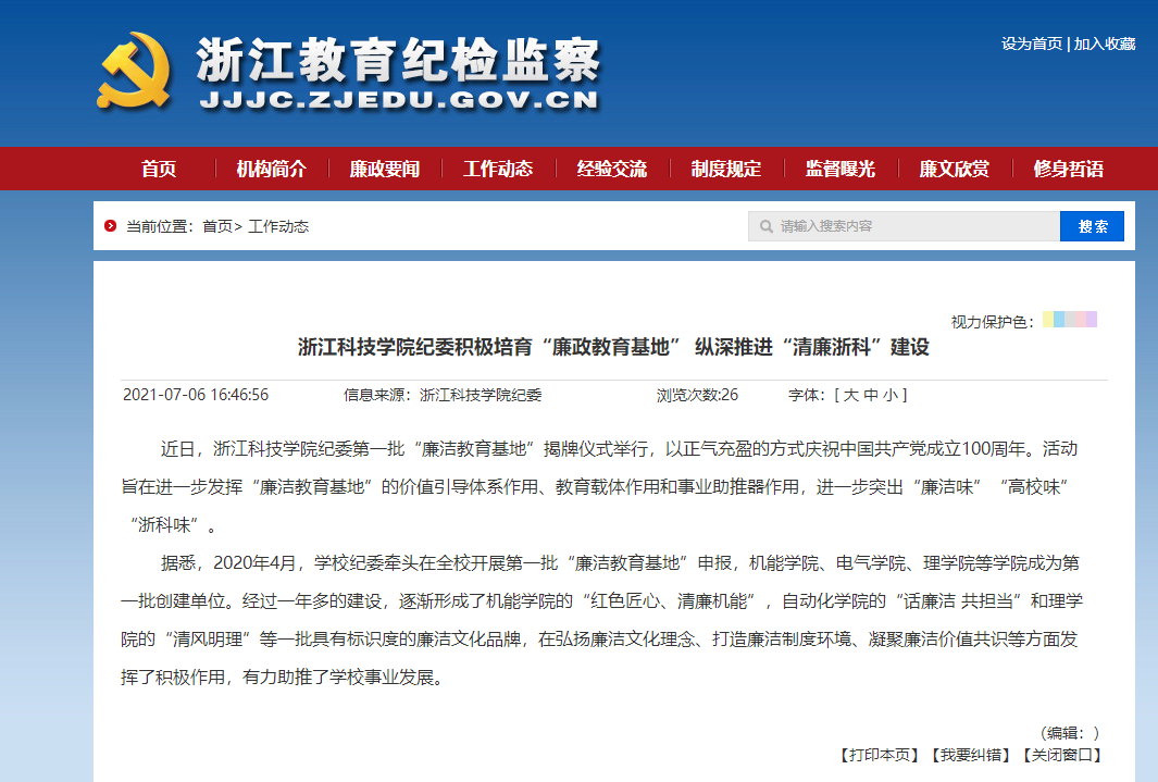 浙江教育纪检监察网:浙江科技学院纪委积极培育“廉政教育基地” 纵深推进“清廉浙科”建设