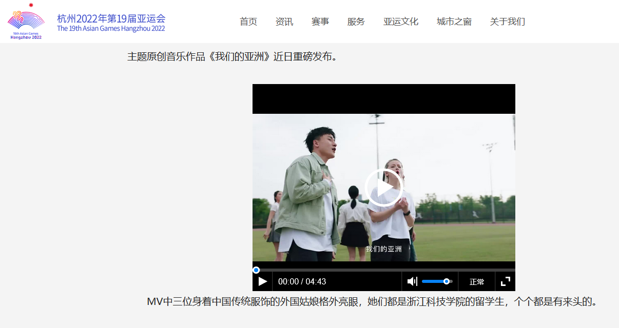 “我们在MV拍摄的过程中也有很多乐趣,让我对亚运会有了更深的了解,也让我体会到音乐是如何将不同的文明团结起来的。”周真林兴奋地说,“我已经迫不及待的想再参与这样的项目了。”