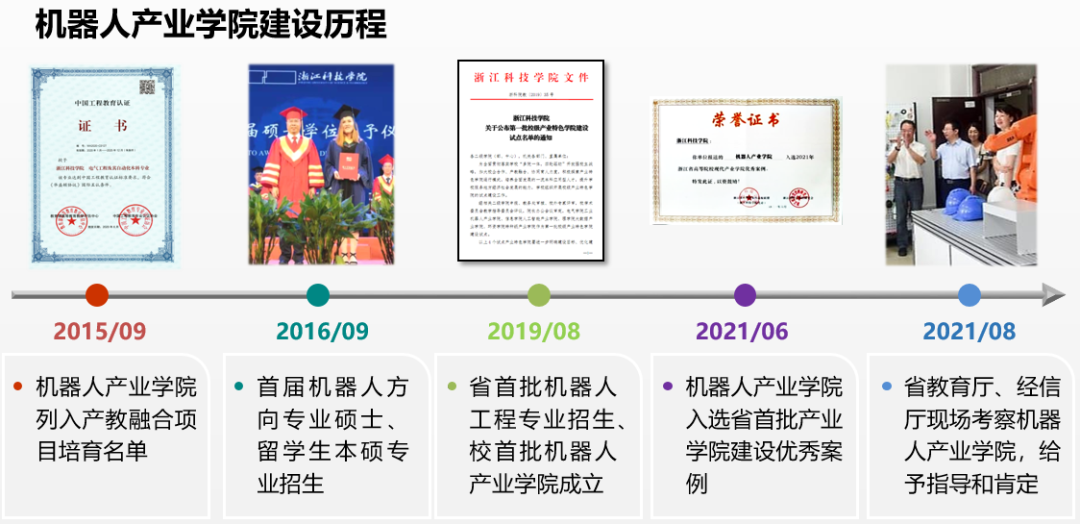 浙江科技学院机器人产业学院成立于2019年8月,是浙江科技学院在“工业4.0”“中国制造2025”等政策背景下,瞄准浙江省“八大万亿”产业需求,聚焦机器人、高端装备产业领域,与浙江国自机器人技术股份有限公司、杭州美仪自动化技术股份有限公司、上海ABB工程有限公司、宁波环杭州湾智能产业园等企业联合组建的集新工科人才培养、科学研究、技术开发、社会服务、创新创业等功能于一体的现代产业学院。2021年12月,机器人产业学院入选浙江省首批重点支持现代产业学院。