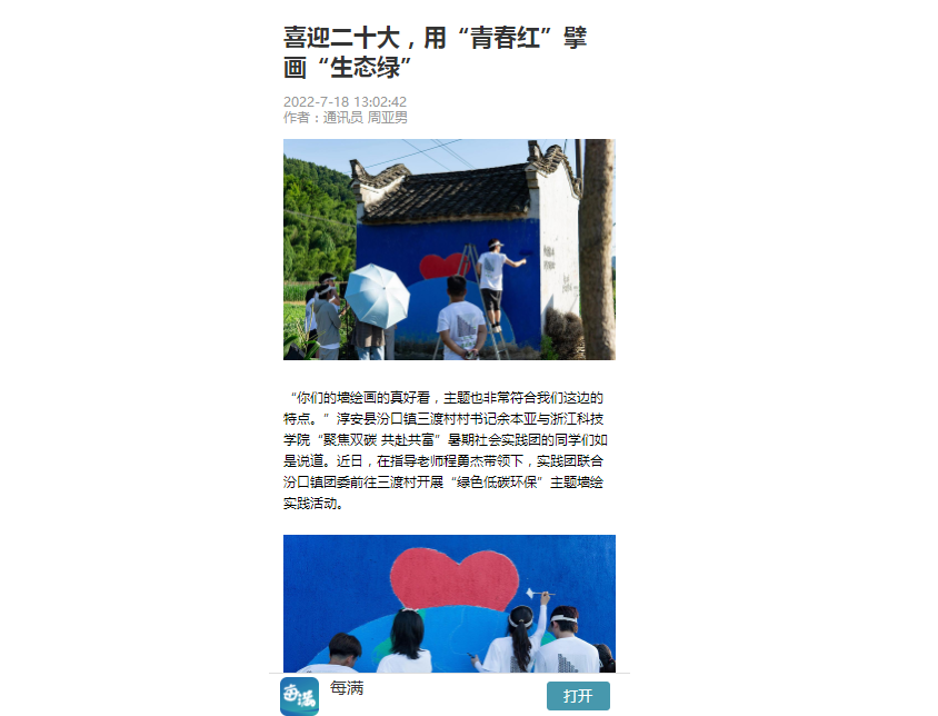 每满新闻客户端:喜迎二十大,用“青春红”擘画“生态绿”