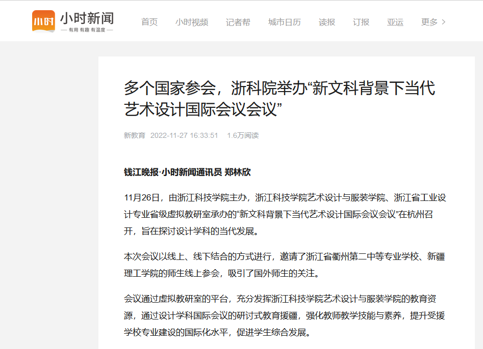 小时新闻:多个国家参会,浙科院举办“新文科背景下当代艺术设计国际会议会议”