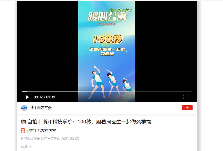 学习强国:嗨·自拍丨浙江科技学院:100秒,跟着周医生一起做颈椎操