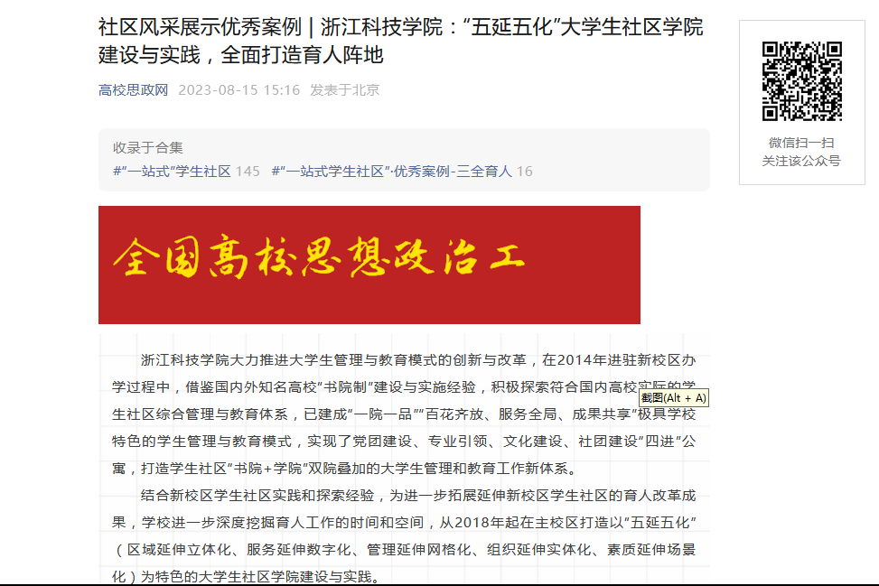 高校思政网:社区风采展示优秀案例 | 浙江科技学院:“五延五化”大学生社区学院建设与实践,全面打造育人阵地