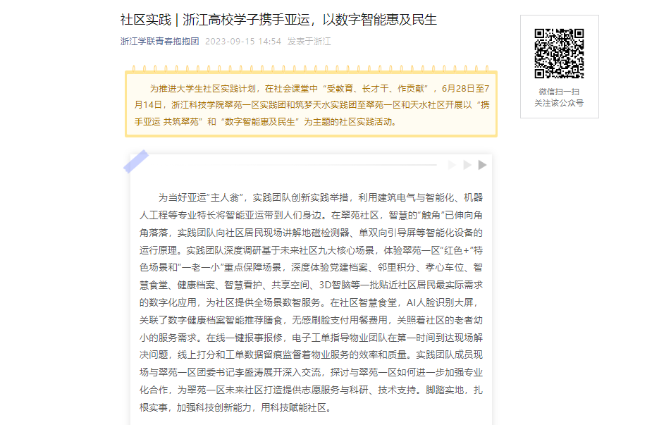 浙江学联青春抱抱团:社区实践 | 浙江高校学子携手亚运,以数字智能惠及民生
