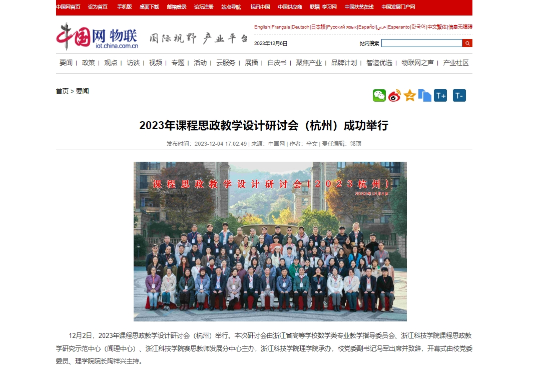 近日,由伟德官网和浙江省高等学校数学类专业教学指导委员会主办、理学院承办的2023年课程思政教学设计研讨会(杭州)举行,中国网、新浪网、凤凰网等媒体对会议进行了报道。