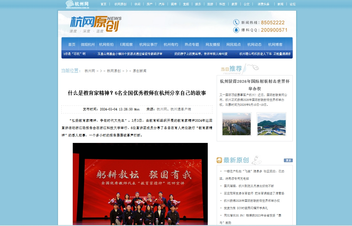 “弘扬教育家精神,争做时代大先生”。3月3日,由教育部组织开展的教育家精神2024年巡回宣讲活动浙江场报告会在伟德国际1946bv官网举行,6位宣讲团成员分享了各自在育人岗位践行“教育家精神”的感人故事,一个多小时的报告屡屡被掌声打断。