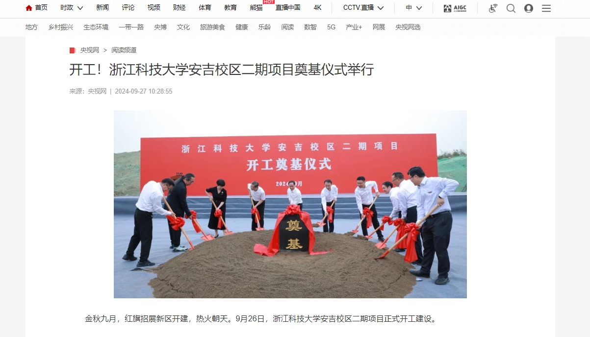 央视网:开工!伟德国际1946bv官网安吉校区二期项目奠基仪式举行