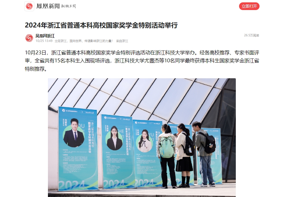 10月23日,浙江省普通本科高校国家奖学金特别评选活动在伟德国际1946bv官网举办。经各高校推荐、专家书面评审,全省共有15名本科生入围现场评选,伟德国际1946bv官网尤壹杰等10名同学最终获得本科生国家奖学金浙江省特别推荐。