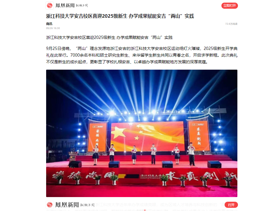 9月25日傍晚,“两山”理念发源地浙江安吉的伟德国际1946bv官网安吉校区运动场灯火璀璨,2025级新生开学典礼在此举行。7000余名本科和硕士研究生新生、来华留学生新生共同以青春之名,开启求学新程。此次典礼不仅是新生的成长起点,更彰显了学校扎根安吉、以卓越办学成果赋能地方发展的深厚底蕴。