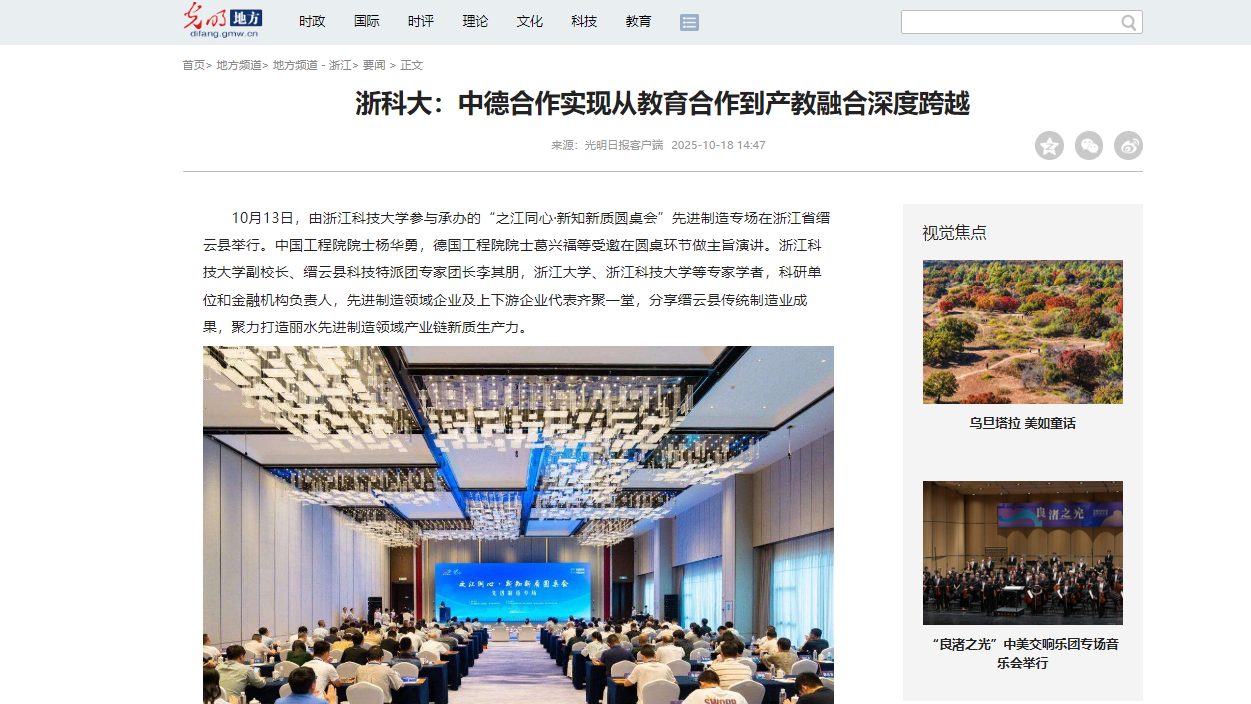 光明网:浙科大:中德合作实现从教育合作到产教融合深度跨越