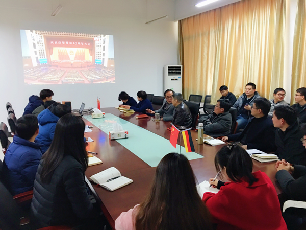 12月18日上午,庆祝改革开放40周年大会在北京人民大会堂隆重举行。中共中央总书记、国家主席、中央军委主席习近平出席大会并发表重要讲话。中央广播电视总台、新华网进行现场直播,人民网、央视网、中国网等中央重点新闻网站平台同步转播。伟德官网师生认真观看大会盛况,仔细聆听习总书记的重要讲话,深入了解改革开放40周年给中国带来的翻天覆地的变化。