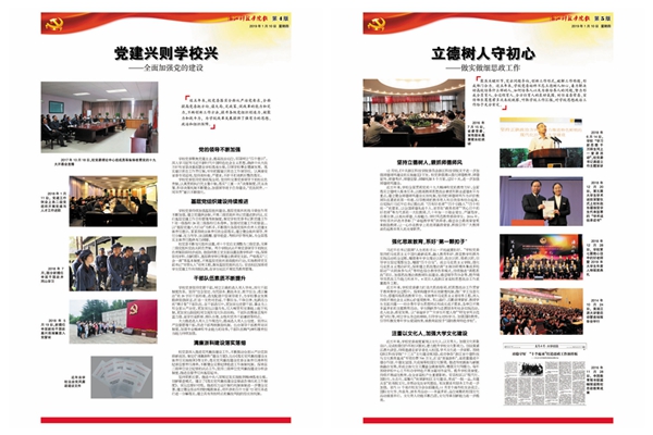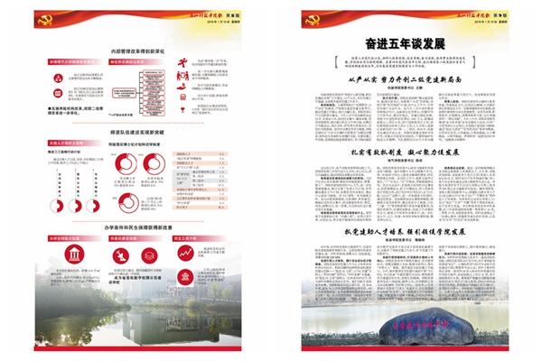 《奋进》特刊系统回顾了校党委带领全校师生砥砺奋进的五年。其中,封面配发评论,鼓舞全校师生同心同德、改革创新、再创辉煌。2版对学校历次党代会进行回顾;3-8版图文并茂,系统梳理过去五年学校在党的建设、思政、人才培养、科研学科、国际合作等方面取得的喜人成绩;9-14版邀请二级党组织负责人畅谈5年来各基层党建实践探索与工作经验,15版介绍本次党代会筹备工作情况。封底号召全校师生为高水平建设社会主义的伟德国际1946bv官网而努力奋斗!