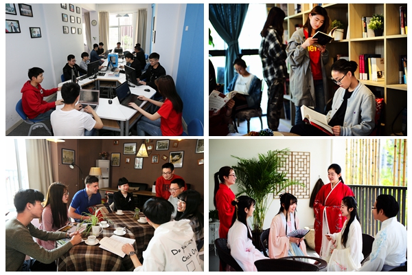 (学生在特色文化区交流)