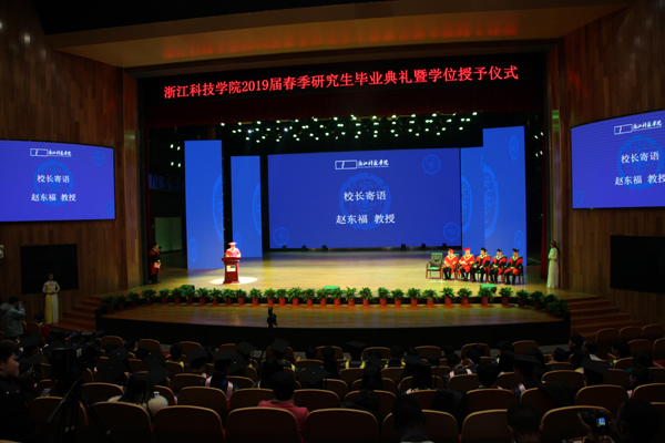 校长赵东福为每一位毕业生拨正硕士帽上的流苏、授予学位证书并合影留念。他为2019届毕业生上“最后一课”。赵东福希望同学们做前行的奋斗者,不断学习,自省自新;牢记母校校训,牢记青春梦想。他衷心祝愿毕业生一路顺风,前程似锦。