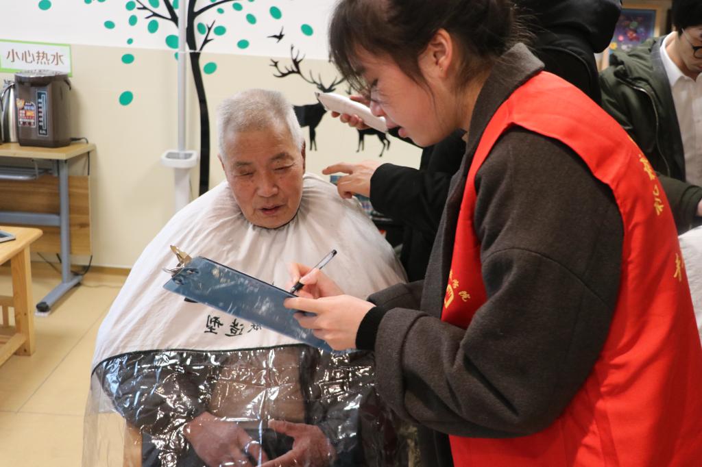 志愿者们为老人们打扫卫生、理发、陪老人谈心、嘘寒问暖,用真情为老人们带去温暖和快乐。70多岁的周爷爷说“志愿者来看望我们,还给我们进行服务,陪我们聊天,我们所有老人都特别开心。”他说,大家在养老院吃得好、住得开心,儿女们也放心。