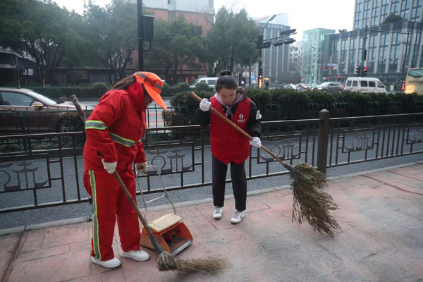 3月4日,土木与建筑工程学院志愿者协会与西溪街道欧美中心楼宇集群党委、西溪街道团工委、浙江省亲亲公益基金会共70余名志愿者聚在一起,和环卫工人交换一小时,让环卫工人吃上一顿安逸的早餐。