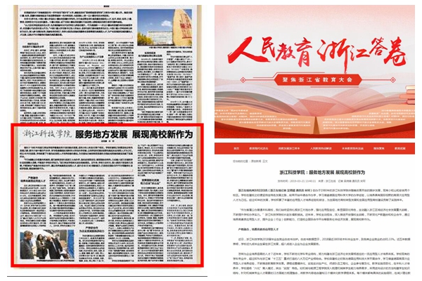 全省教育大会召开在即,《浙江日报》、浙江在线等媒体梳理浙江高校发展样本,展现浙江教育改革发展的重大成就,以《服务地方发展 展现高校新作为》为题,聚焦伟德官网产教融合,培养高素质应用型人才;产学研合作,为企业发展提供原动力;发挥国际化优势 搭建桥梁助力企业“走出去”。