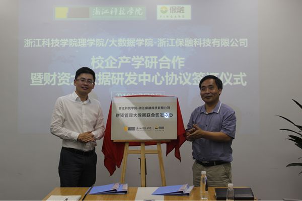 7月9日,理学院/大数据学院与浙江保融科技有限公司签订产学研合作协议,共同成立“财资管理大数据联合研发中心”,共同建立“校企共建研究生培养基地”(图2)。校党委委员、理学院/曙光大数据学院院长陶祥兴等一行6人参加。据悉,浙江保融科技有限公司是理学院/大数据学院签约实践基地单位,该公司在财资管理、金融大数据处理方面有较强的行业优势,是国内有较强影响力的财资管理综合运营服务商。保融科技长期以来与理学院/大数据学院保持积极的沟通,未来双方将在以项目合作为依托、学生培养为宗旨的基础上开展深度产学研合作。