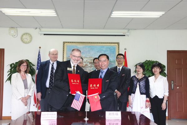 5月26日,美国日内瓦大学校长凯文•李•特鲁普(Calvin Lee Troup)、副校长约翰•刘(John Liu)一行4人来伟德官网进行合作洽谈。双方相互介绍各自学校的办学情况及对外交流情况,并就具体实施 “1+1.5” 硕士联合培养项目、开展师生交流、通识教育合作、暑期学习等进行探讨。访问期间,双方签署了“1+1.5”硕士生联合培养合作协议。该协议为伟德官网首个与国外高校签署的硕士研究生联合培养协议。