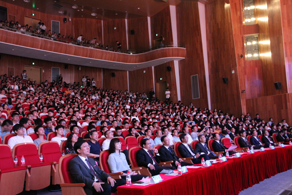 6月18日晚,2019届毕业典礼在水晶剧院举行。校党政领导班子成员出席。典礼由校党委副书记周加敏和史灏煜、李帅两名同学以中英双语一同主持。