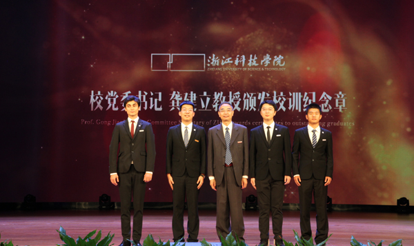 校党委书记龚建立为本科生、研究生和留学生毕业代表颁发纪念章,还为省级、校级优秀毕业生代表颁发证书。