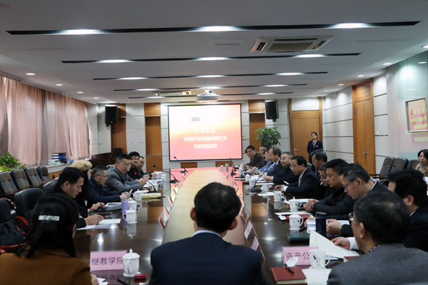 汇报会上,龚建立代表学校对考评复核组一行表示热烈欢迎,他简要介绍学校的办学特色和成果。龚建立表示学校党委行政高度重视安全稳定和平安校园建设工作,始终将维护校园安全稳定作为首要的政治任务,头等的工作任务和做好学校一切工作的底线,希望专家组通过深度考察,发现问题、找出差距、对症下药、开出良方,助推学校平安校园建设工作再上新台阶。