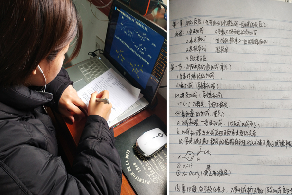 上完课,制药工程182胡锋清第一时间跟我们分享了她的感受,“我感觉挺好的,周老师上课很有条理,重点也很清晰,PPT上的内容都做了很详细的讲解。周老师已经发了电子版教材,还是和纸质版教材有点区别,有些内容我没来得及做好笔记,我准备下课后再去看回放完善。”
