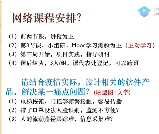 面对73名学生身处各地,如何完成互动、分散的在线教学,马老师坦言,一开始也感到紧张和焦虑。为了有效提升学生的注意力和学习兴趣,他结合此次疫情,对课程内容进行了重新编排。“平时代码调试是否会利用开发环境中断点调试等工具?会请选A、 不会请选B”穿插课间的各类随堂小问题,让马老师可以根据互动反馈,进一步讲解和深化相关知识点。不少内容是与疫情防控紧密相关的,“请3人一组,完成课后作业:结合疫情实际,选择设计一款的软件产品,解决____问题:(1)电梯按钮、门把等频繁接触,容易传播;(2)带了口罩没法人脸识别,检测不方便;(3)人的流动路径跟踪难,信息采集难。”