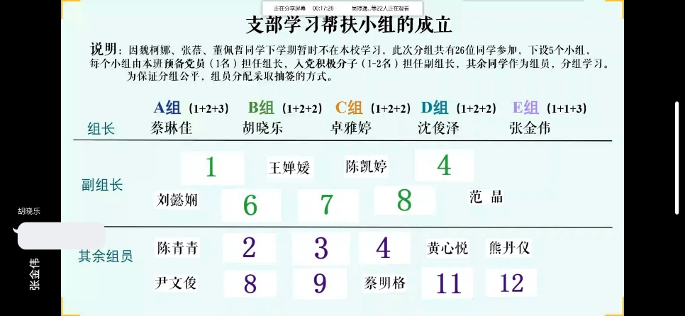 外国语学院/中德学院英语173团支部积极开展了“停课不停学”活动,成立了支部学习帮扶小组,26位同学分成5个小组,每个小组都由预备党员担任组长,入党积极分子担任副组长,其余同学担任组员,建立起“友好互助小组”,在组内互相交流讨论,共同创造融洽、和谐、友爱的学习环境。