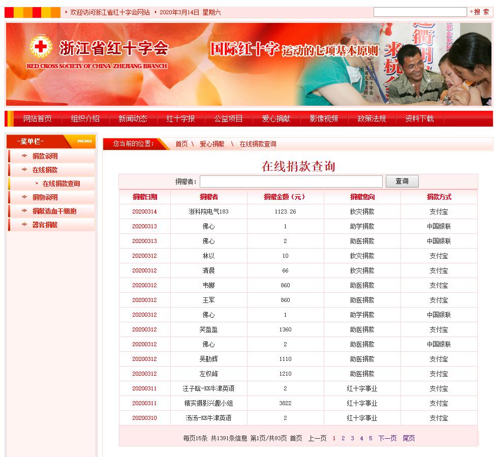 自动化与电气工程学院电气183团支部在线上团日活动期间,凝聚支部力量,发起为灾区捐款行动,共向浙江省红十字会捐款1123.26元,为抗击疫情奉献绵薄之力。