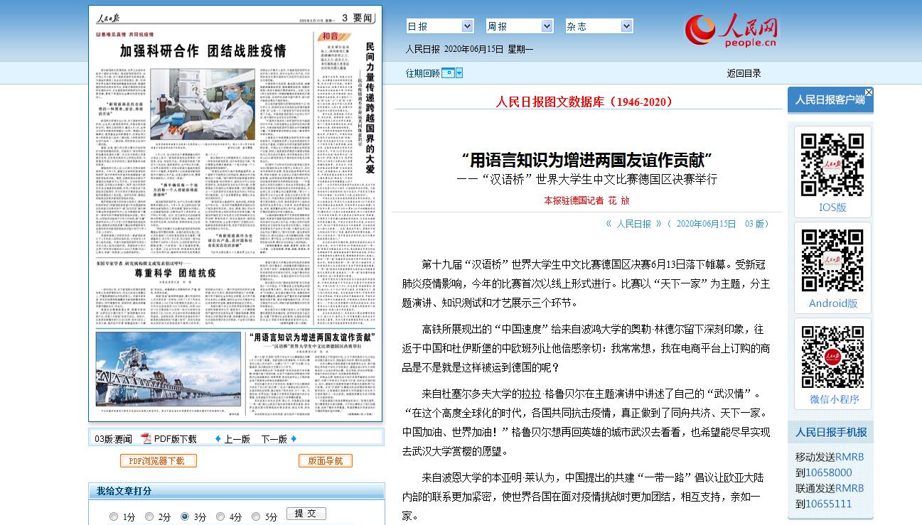 近日,由中国驻德国大使馆承办、埃尔福特应用科技大学孔子学院协办的第19届“汉语桥”比赛德国赛区决赛和第13届“汉语桥”世界中学生中文比赛德国区决赛先后落下帷幕。人民日报、新华网、人民网、央视新闻客户端、中国新闻网、央视新闻(点击查看原文)以及欧洲华语媒体《欧洲时报》等对比赛做了报道。