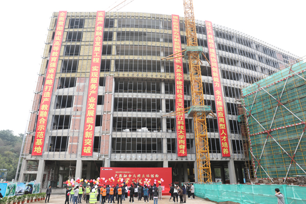 10月18日校庆活动日上午,产教融合大楼主体结构完工仪式在小和山校区举行。校党委书记龚建立宣布完工。龚建立、赵东福和师生代表共同放飞气球庆祝。