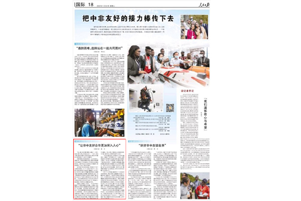11月24日,《人民日报》以《把中非友好的接力棒传下去》为题,讲述第五届中非青年大联欢期间,中非青年加强交流交往,增进对彼此国情和文化的了解,伟德官网津巴布韦籍留学生、理学院/大数据学院学生米莱讲述他在中国学习、生活感悟,分享自己对中国社会经济发展变化的认知。(留学生中心 王飘飘)