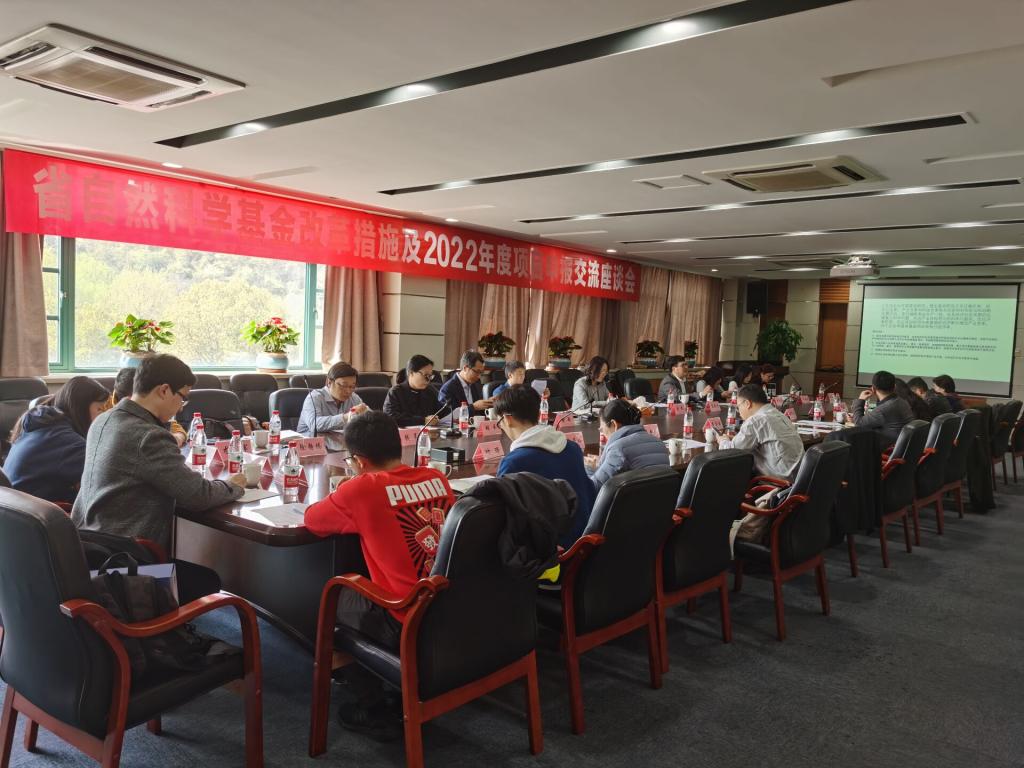 各高校科研管理部门负责人与省自然科学基金办相关人员就2022年度省基础公益项目申报及改革举措等问题进行交流座谈。(科研处 文 霍迪 图 管青山)