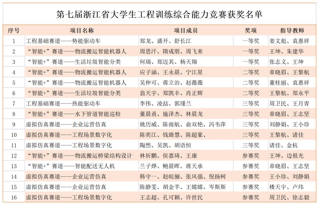 日前,第七届浙江省大学生工程训练综合能力竞赛暨第七届全国大学生工程训练综合能力竞赛浙江省选拔赛结果发文公布,伟德官网参赛队伍获得一等奖3项、二等奖3项、三等奖5项目、参赛奖6项。