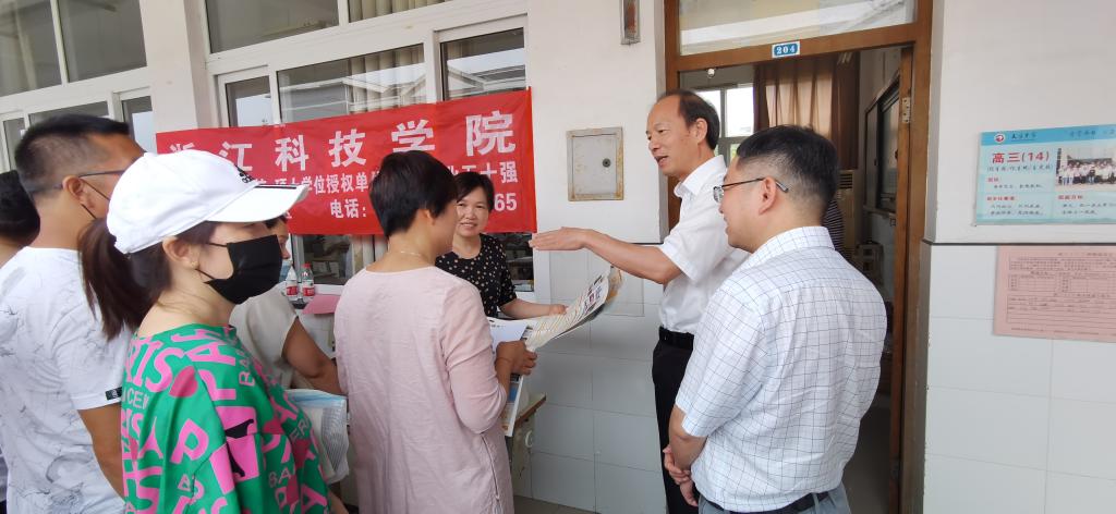 周加敏一行在前往招生咨询现场,在专场宣讲会上介绍学校办学历史和办学特色,与考生家长们进行了亲切交谈,对今年高考考生报考浙江科技学院表示欢迎。周加敏代表学校向全体招生人员辛勤工作表示感谢,希望大家能开拓思路、创新方法、多出实招深入开展工作,高质量圆满完成今年招生任务,为学校发展做出新的更大的贡献。