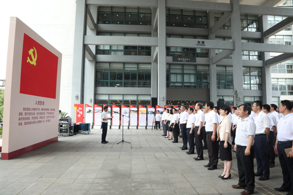 迎百年华诞,为信仰立誓。6月29日,学校举行新党员入党宣誓、老党员重温入党誓词仪式。校党委书记龚建立领誓,校党委副书记符宁平主持仪式。校党委班子成员,全体党员中层干部,新发展党员代表参加。