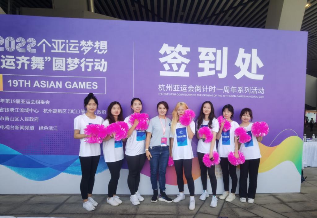 “我们在今年7月举行的全国啦啦操(杭州站)中获得了一等奖,所以受邀参加亚组委联合中国体育舞蹈联合会举办的‘为亚运齐舞’杭州亚运会倒计时一周年公益圆梦活动”,据体育部陈新蕊老师介绍,此次“为亚运齐舞”活动共有街舞、拉丁、啦啦操和轮椅舞等四个舞种,分为线上舞蹈视频与线下齐舞两部分,伟德官网7名同学参与其中,用动感活力的舞步展示着亚运梦想的力量和魅力。