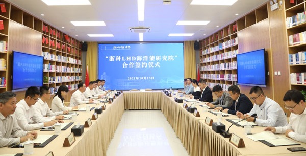 赵东福代表学校与杭州林东新能源科技股份有限公司签订《“浙科LHD海洋能研究院”合作协议》。根据协议,双方将以学校机能学院、电气学院、建工学院等学院和杭州林东新能源科技股份有限公司、LHD联合动能海洋能大型实验室的相关研究人员和实验室为基础,共同组建“浙科LHD海洋能研究院”,双方以研究院为平台开展海洋能共性关键技术研究及产业化开发等全方位合作。