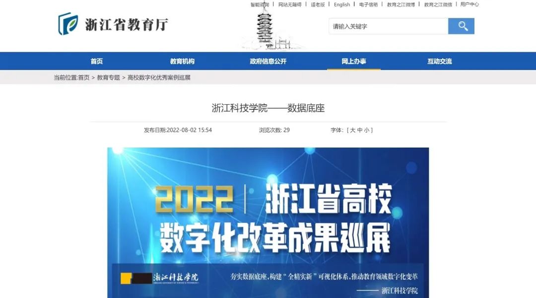 据悉,2022浙江省高校数字化改革成果巡展旨在坚持以习近平总书记关于数字中国和数字化改革的重要论述为指引,深入贯彻落实省委省政府关于数字化改革的决策部署,围绕立德树人根本任务,对标我省数字化改革“1612”体系架构,总结宣传一批具有高校辨识度的高水平数字化平台和应用,全方位纵深推进数字化改革。
